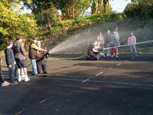 Nos apprentis pompiers ont eu la chance d’enfiler les tenues, de monter dans les camions, de manipuler la lance à incendie, et de poser toutes les questions qu’ils avaient!