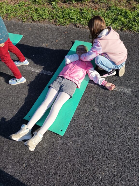 Lors de l’atelier avec l’infirmière, ils ont appris à positionner un camarade en PLS.