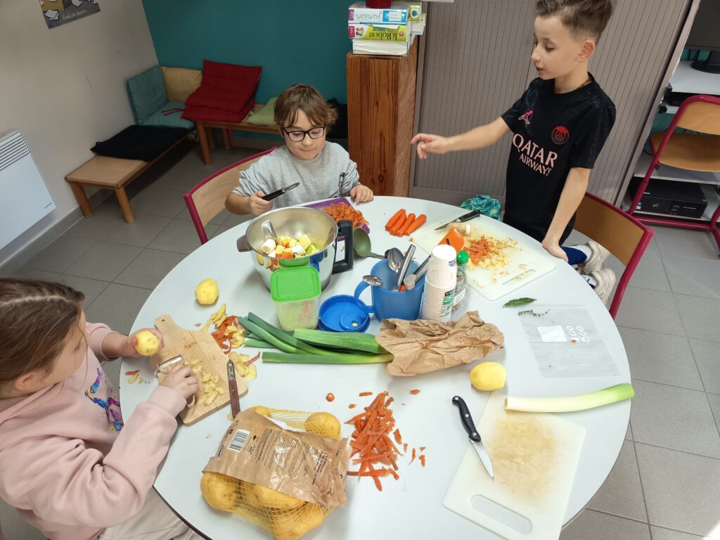 Atelier cuisine en classePar Marie Caquineau / 14 janvier 2026 Après avoir étudié l’album “Une soupe 100% sorcière”, les élèves ont réalisé la recette de la soupe de la sorcière Kroquela! Ils ont épluché et coupé les légumes, puis ont dégusté la soupe… jusqu’à la dernière goutte!